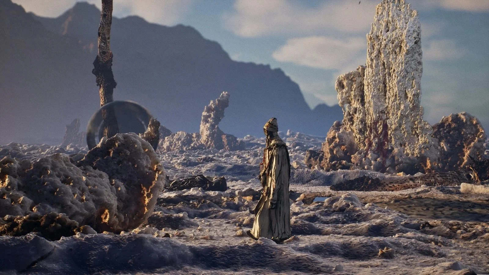 Virtual Stills: Jakob Kudsk Steensen, The Song Trapper, 2025. Moving image, virtual performance and spatialised sound.